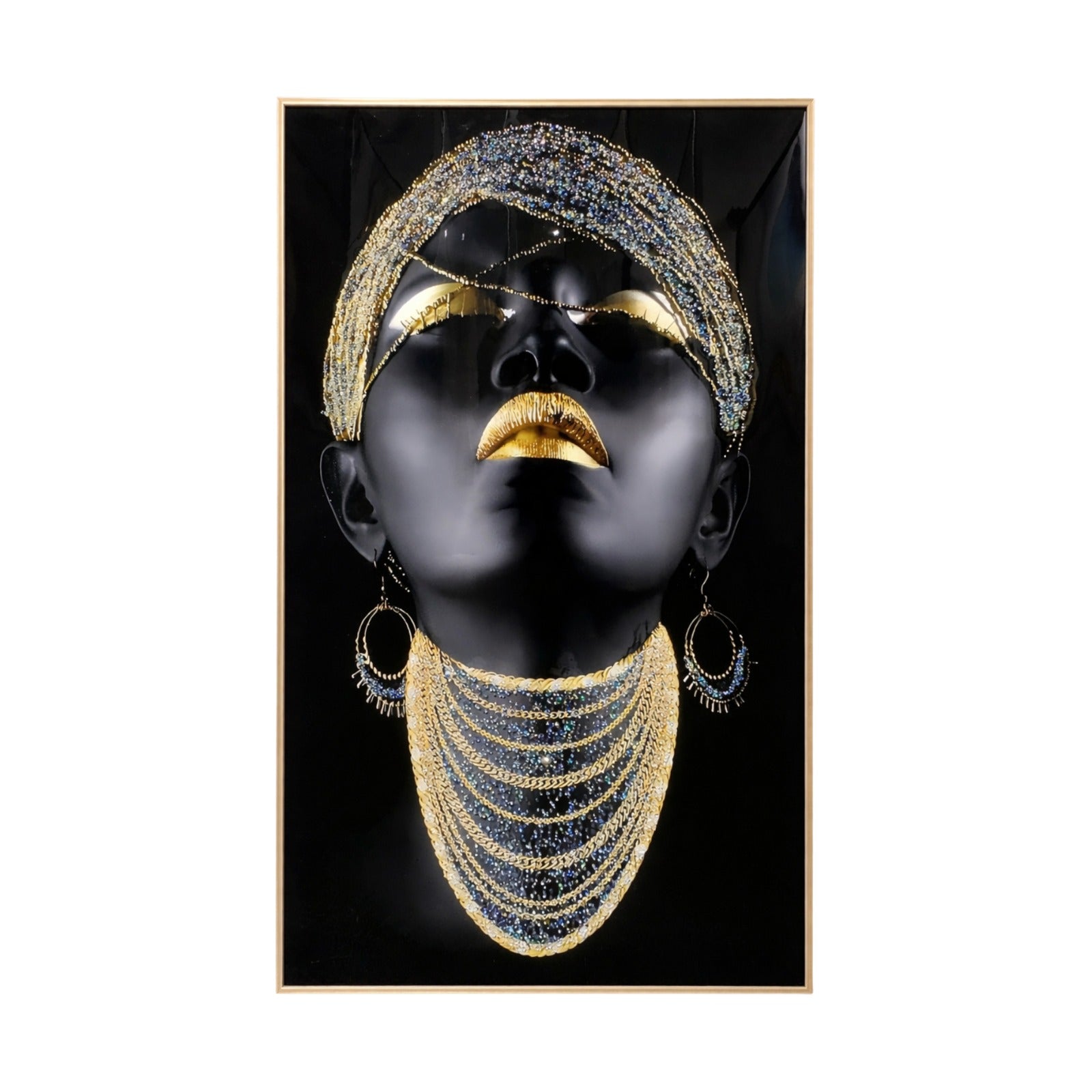 Cuadro decorativo con luz LED integrada y control remoto, elaborado en resina con incrustaciones de diamantes que reflejan la iluminación.