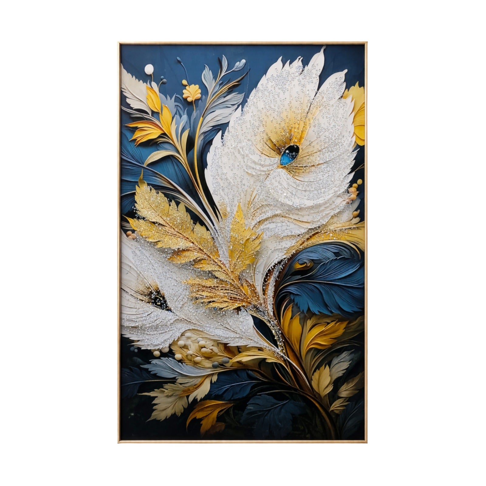 Cuadro decorativo con luz LED integrada y control remoto, elaborado en resina con incrustaciones de diamantes que reflejan la iluminación.